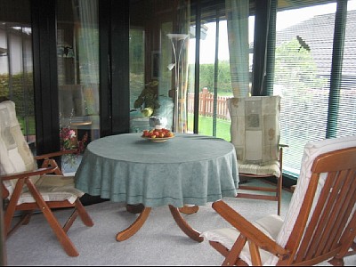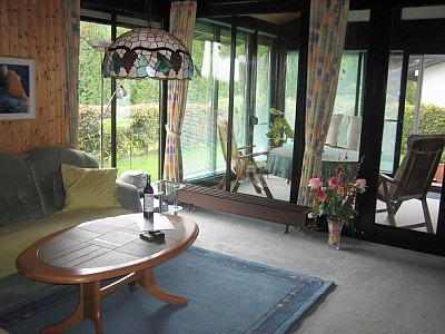 Es ist ausgestattet mit Wintergarten, 2 Schlafzimmern (1 Doppelbett und 2 Einzelbetten), Küche, ein großes gemütliches Wohnzimmer mit Farbfernseher, Radio, DVD, Bad, Flur und einem Abstellraum mit Waschmaschine. Ein zusätzlicher Fernseher befindet sich im Schlafzimmmer. Das Haus verfügt zum Schlafkomfort über Rolladen.